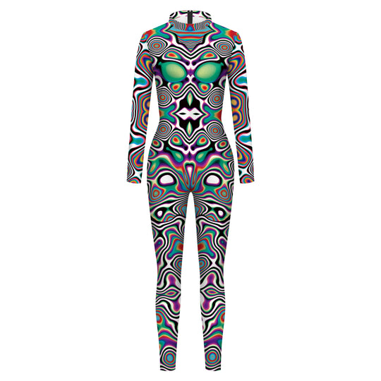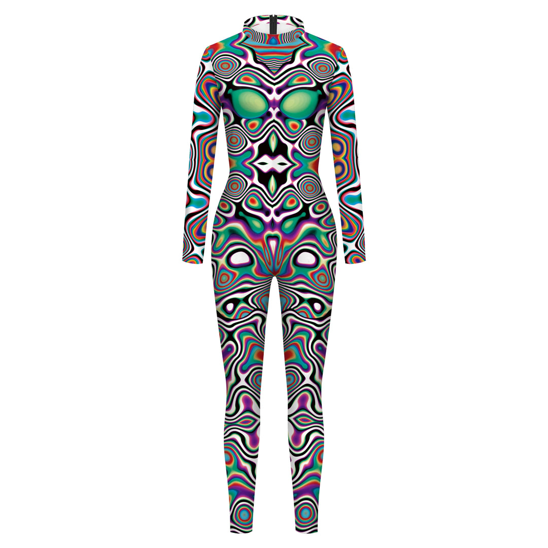 Das psychedelische Muster in leuchtenden, lebendigen Farben sorgt für ein auffälliges Aussehen, das sowohl auf der Tanzfläche als auch bei Tageslicht beeindruckt. Der hautenge, formschmeichelnde Schnitt bietet volle Bewegungsfreiheit, während das atmungsaktive Material für optimalen Komfort sorgt, selbst bei stundenlangem Tanzen.